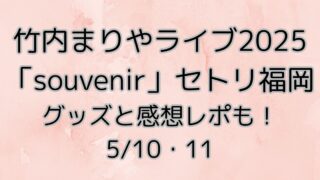 エンタメ 竹内まりやライブ2025「souvenir」セトリ福岡グッズと感想レポも!5/10・11 2025年、竹内まりやさんの待望のライブツアー「souvenir」がついにスタートしました。今回は、福岡で披露されたセトリ(セットリスト)をはじめ、ファンの間で話題となったツアーグッズや、参加者から寄せられた感想レポをお届けします。竹内まり... 2025.05.11 エンタメ